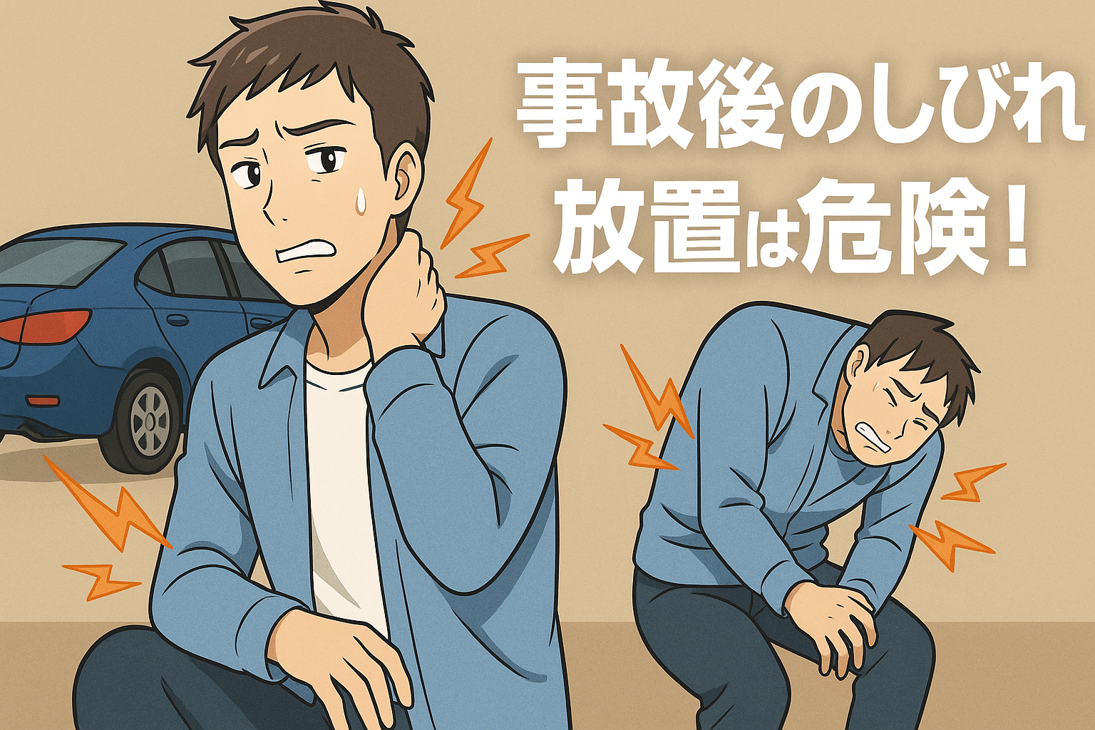 事故直後はアドレナリンが分泌されることで痛みを感じにくくなり、「大丈夫そう」と思ってしまう方も多いのですが、数日経ってからしびれや重だるさが出てくることがあります。